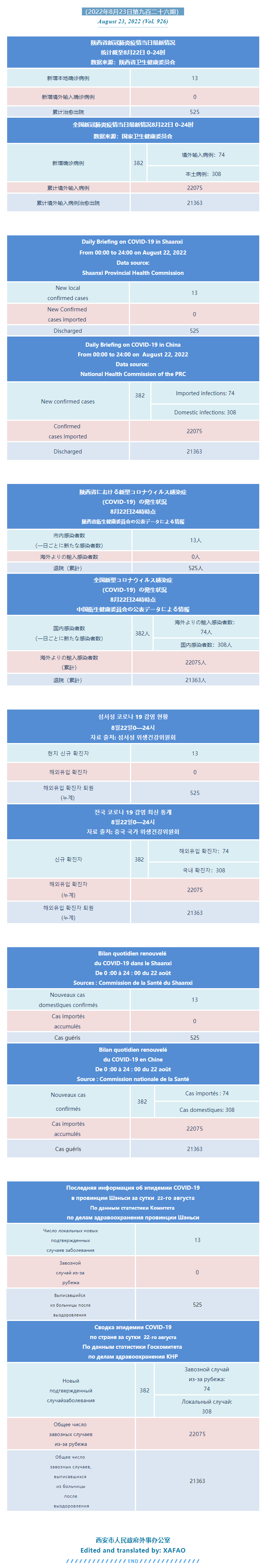 西安市外办向在西安的外国人通报每日疫情(第九百二十六期)