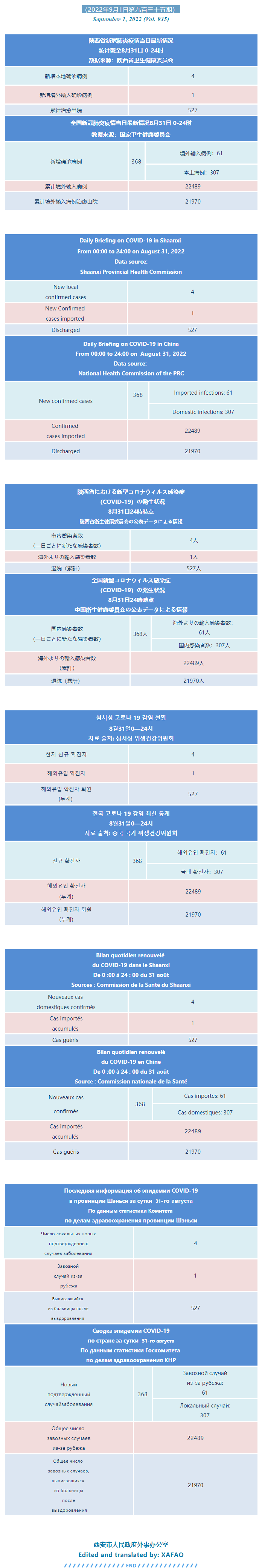西安市外办向在西安的外国人通报每日疫情(第九百三十五期)