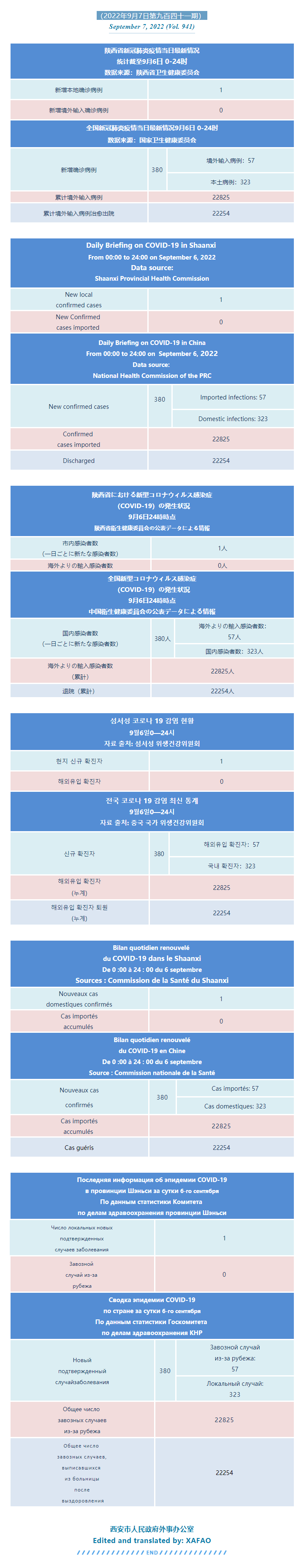 西安市外办向在西安的外国人通报每日疫情(第九百四十一期)