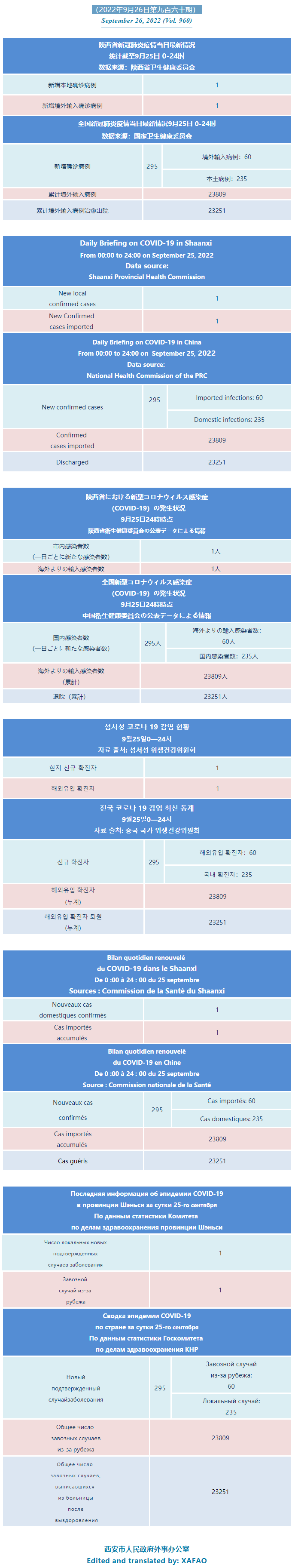 西安市外办向在西安的外国人通报每日疫情(第九百六十期)
