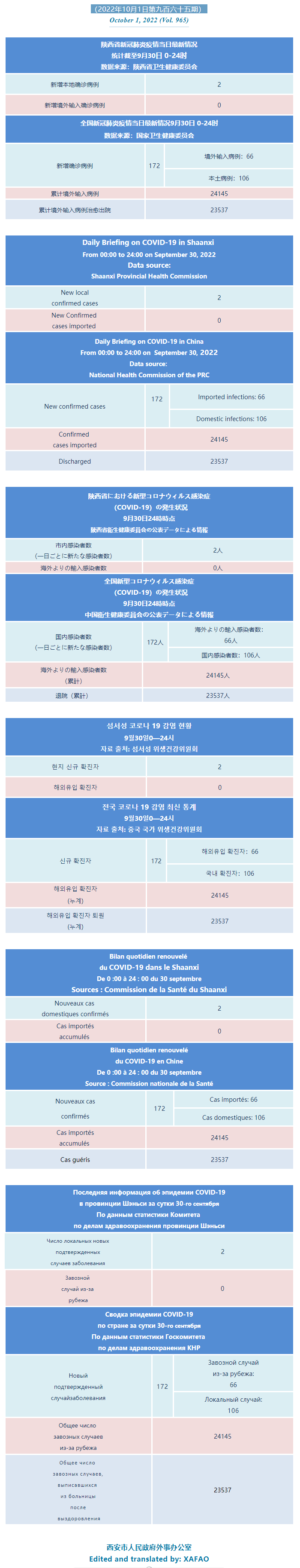 西安市外办向在西安的外国人通报每日疫情(第九百六十五期)