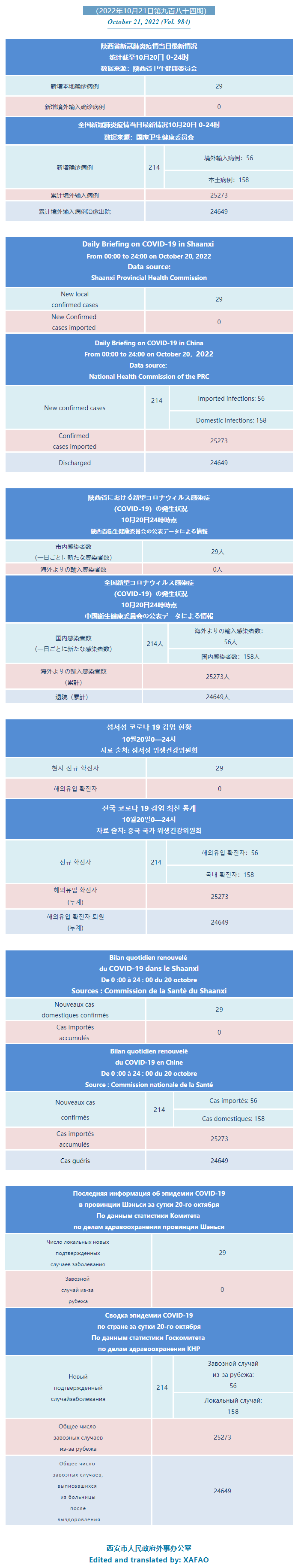 西安市外办向在西安的外国人通报每日疫情(第九百八十四期)