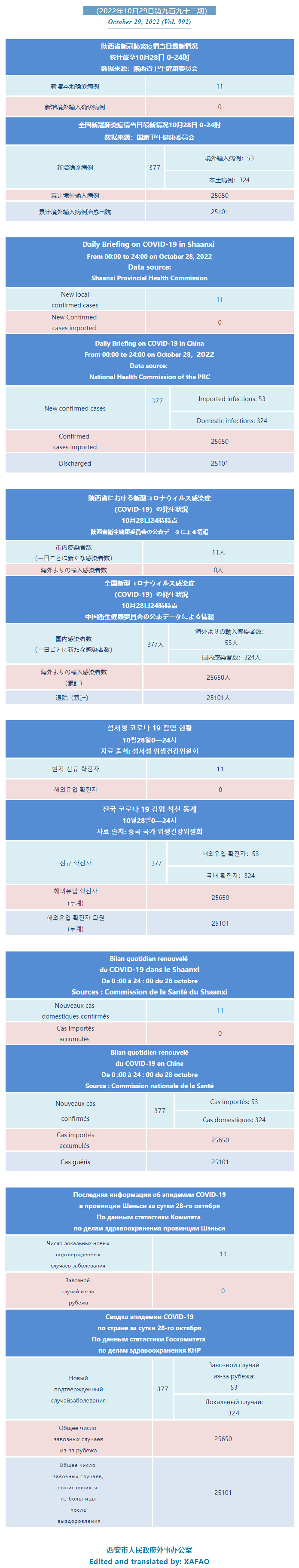 西安市外办向在西安的外国人通报每日疫情(第九百九十二期)