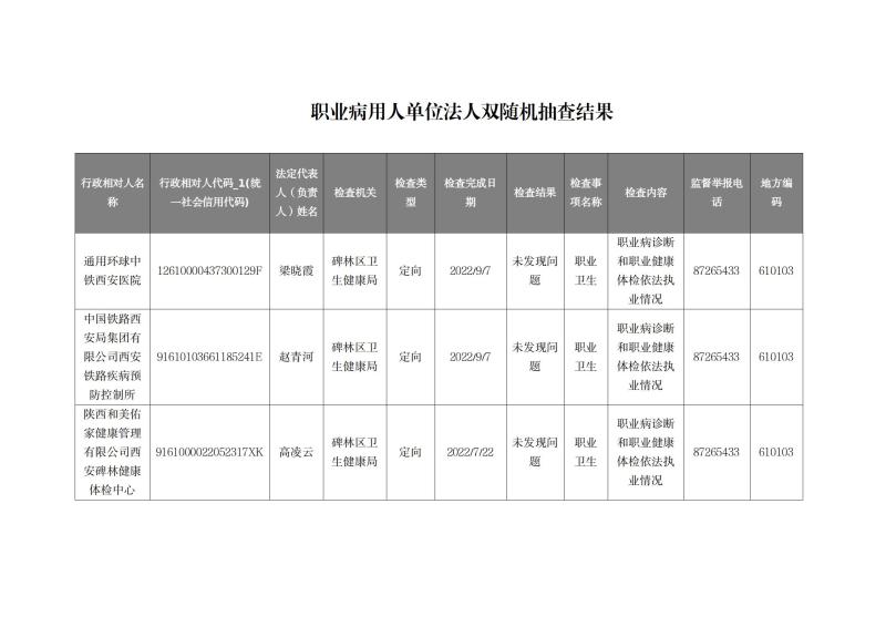 西安市碑林区2022年“双随机、一公开”职业病体检机构抽检结果公示