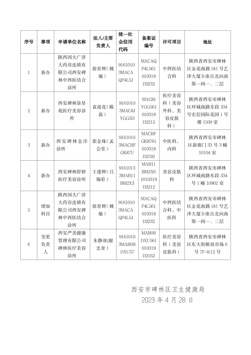 诊所备案信息公示