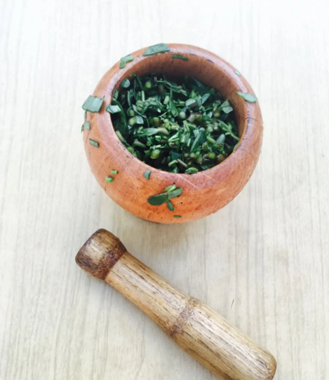 原料:鲜马齿苋500克、鲜红椒2根、鲜绿椒1根、鲜大蒜、生姜。