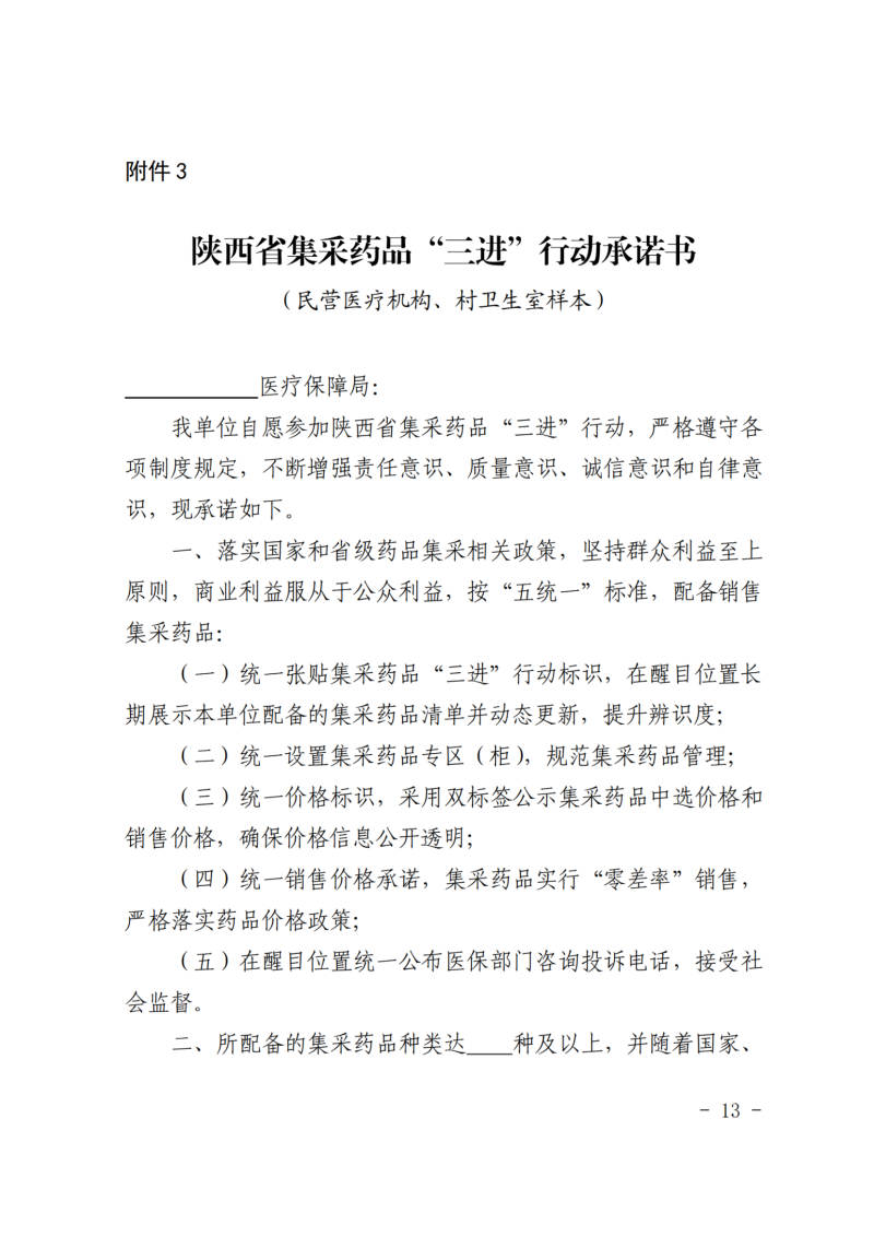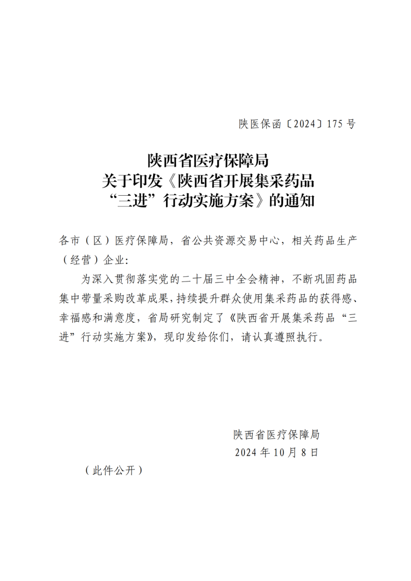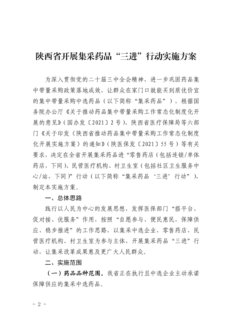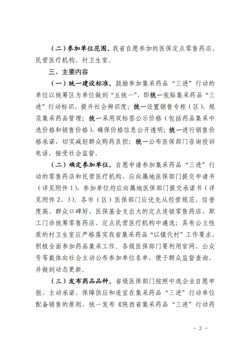 陕西省医疗保障局关于印发《陕西省开展集采药品 “三进”行动实施方案》的通知
