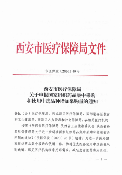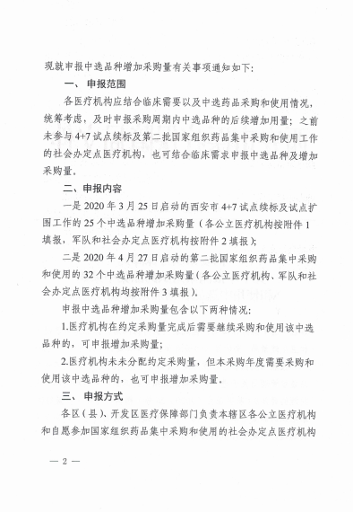 关于申报国家组织药品集中采购和使用中选药品增加采购量的通知
