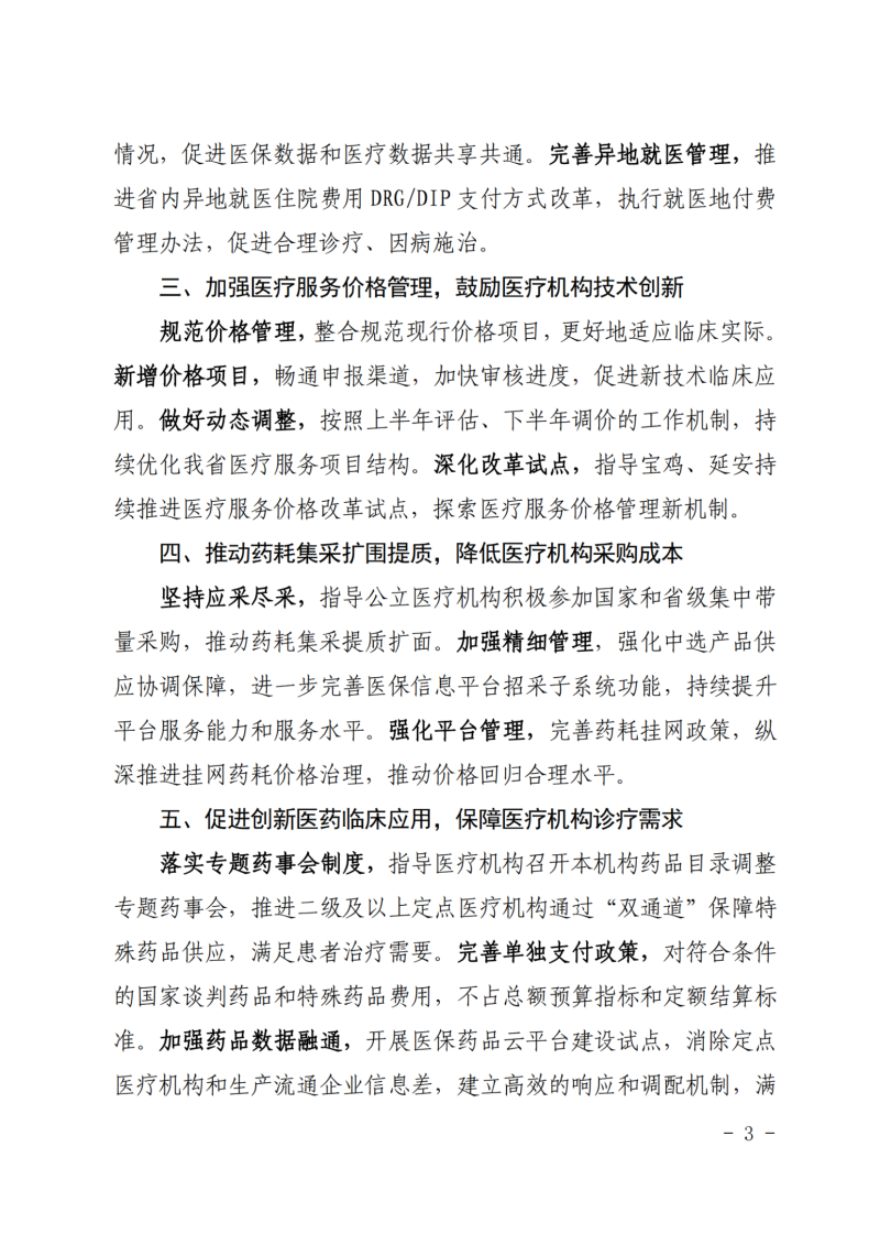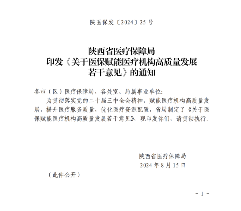 陕西省医疗保障局印发《关于医保赋能医疗机构高质量发展若干意见》的通知