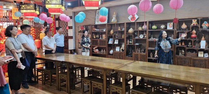 碑林区文化馆馆长王敏带佛山市顺德区政协的同志们依次参观了非遗展厅、非遗陈列馆,并详细介绍了碑林区的非遗项目,以及从非遗创造性转化、创新性发展先进做法,非遗融入现代生活、构建非遗城市文化品牌方面做法,非遗助力文旅发展、打造非遗街区经验,非遗传承队伍建设等方面进行了分享和交流。