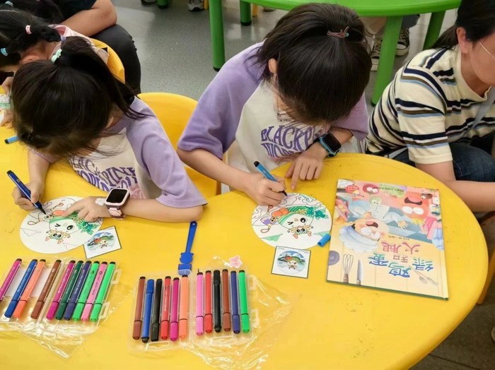 绘本讲读结束后,小林姐姐为孩子们准备了画着粽子、龙舟、香囊等端午节元素的扇子,鼓励他们发挥想象力,为扇子涂上漂亮的颜色。孩子们纷纷拿起画笔,在扇子上尽情挥洒创意,一把把独具特色的扇子在他们的巧手中诞生。