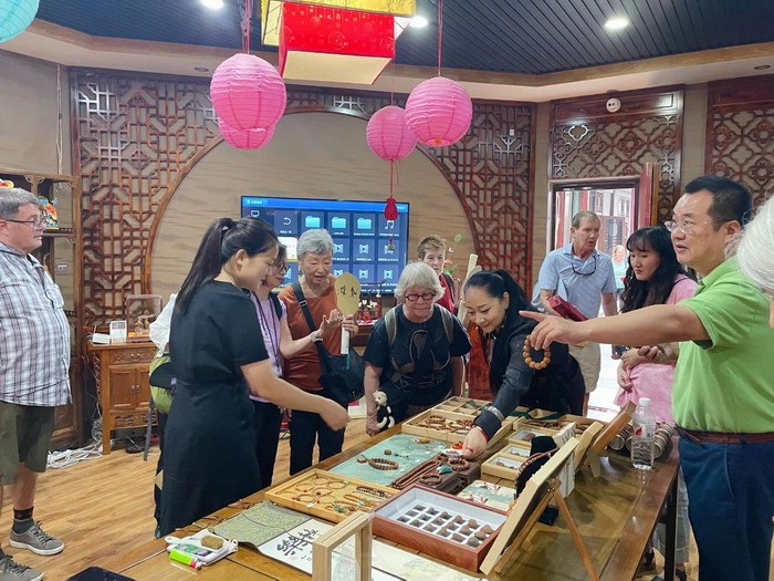 活动伊始,王馆长生动地介绍了碑林区丰富多彩的非物质文化遗产,从传统技艺到民间艺术,从古老的手工艺到独特的民俗风情。美国友人们听得津津有味,不时发出阵阵惊叹,被非遗的魅力深深折服。