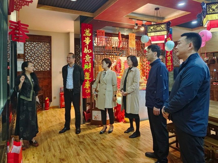 来宾依次参观了非遗展厅和非遗陈列馆。碑林区文化和旅游体育局四级调研员杨宁介绍了文化馆的概况,王敏馆长详细介绍了碑林区的非遗项目,并分享了碑林区文化馆在非遗项目发掘、非遗保护传承以及非遗文创研发方面的宝贵经验。