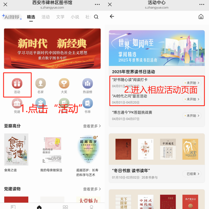 在2025年世界读书日到来前,碑林区图书馆联合掌阅精选推出“世界 如阅而至”阅读活动。快来参与活动,以文字的形式遇见世界,让世界走近你。