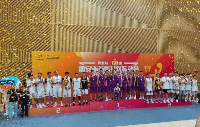 7月20-21日,西安市首届社区运动会,最后一个项目篮球交流赛在国际港务区篮球馆拉开帷幕。最终,碑林区男篮一路过关斩将,以四战全胜战绩荣获冠军。