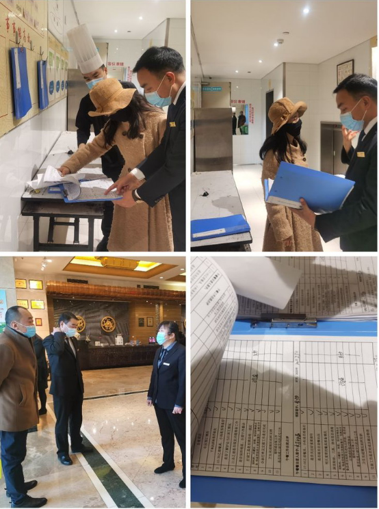 此次检查重点检查了A级景区疫情常态化防控措施、消防设施、垃圾分类、禁塑等落实情况,查阅了员工每日消毒登记表、安全生产工作等相关资料台账。并要求各A级景区要进一步组织加强管理,严格落实疫情测温、扫码等措施,同时提升景区服务质量,为市民游客提供一个安全有序的、文明规范的旅游氛围。针对星级酒店查看入口处扫码+测温+戴口罩、冷链食品进出库台账、消杀记录、消毒剂配制、员工防控知识培训等内容。