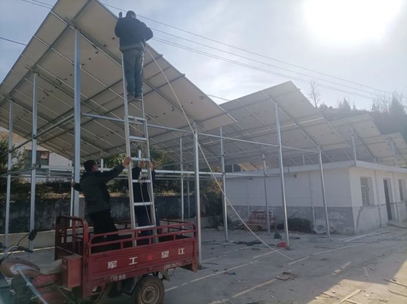 12月2日,57岁的村民黄广义又来到工地上,只见头戴安全帽的工人正在抓紧施工,有的在搭建太阳能组件支架,有的正安装太阳能板,有的在进行逆变器安装,建设现场一派繁忙景象。