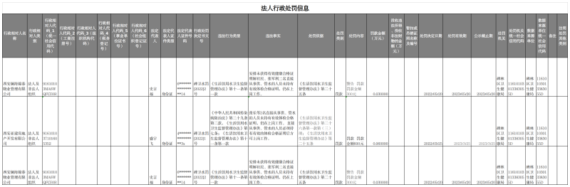 卫生行政处罚信息(生活饮用水)
