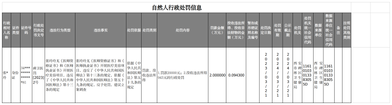 西安市碑林区卫生健康局自然人行政处罚信息—医疗(三月)