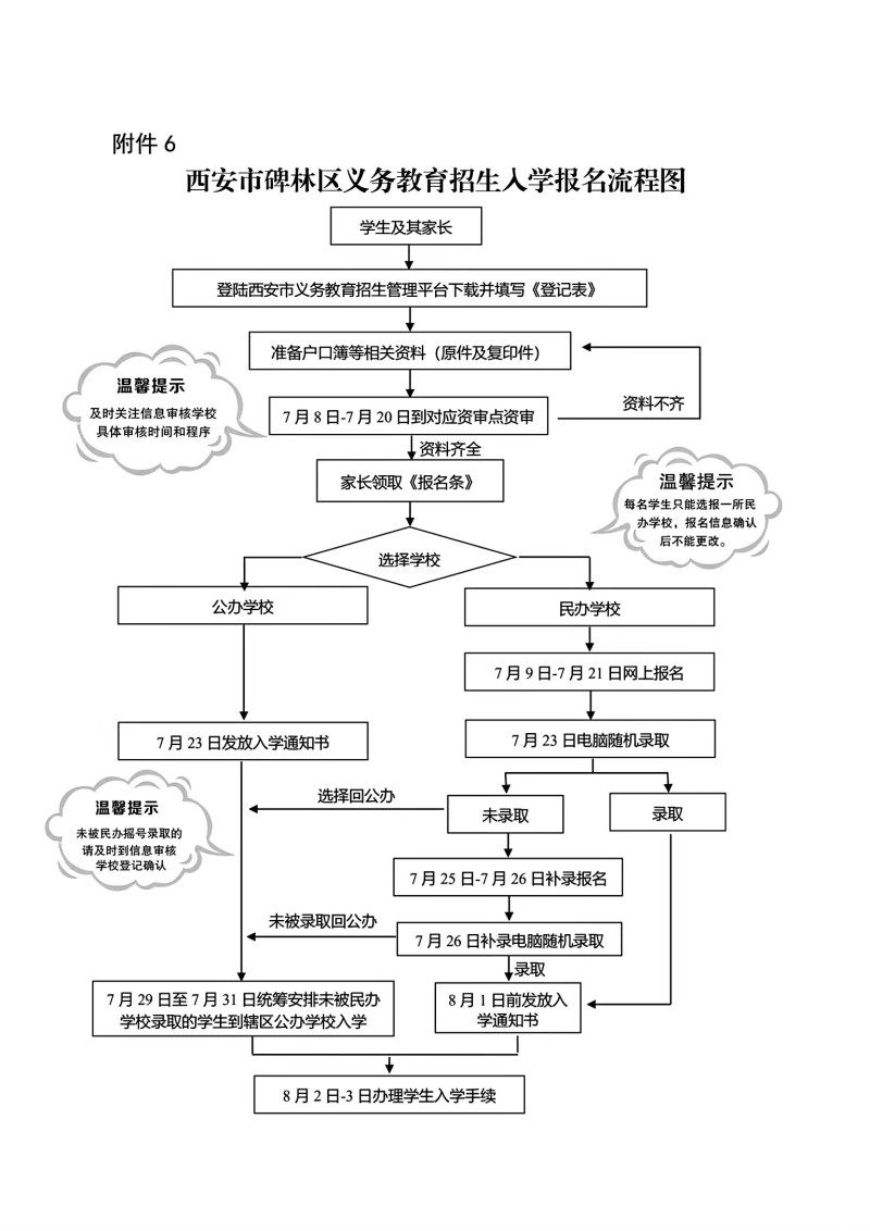 西安市碑林区义务教育招生入学报名流程图