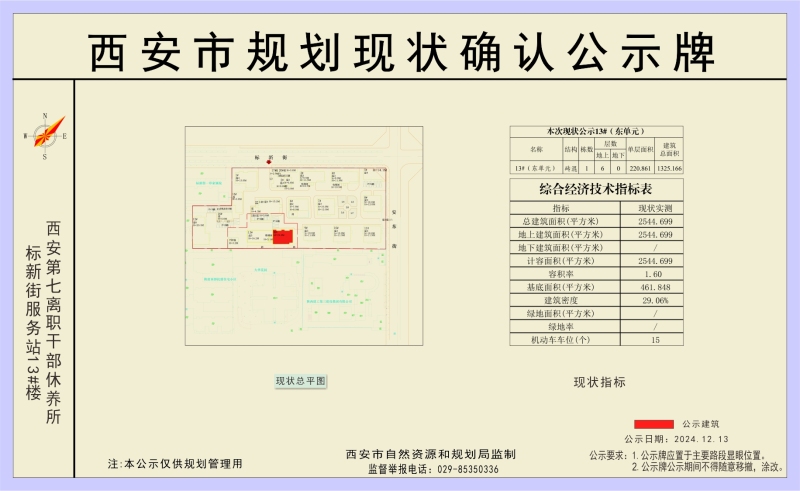 陕西省军区西安第七离职干部休养所13号楼现状确认公示。