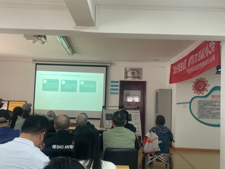 讲座中,宣讲老师首先用视频、图片等直观的形式向大家简单介绍了目前全球的环境状况,然后由浅及深地向社区居民讲解了什么是垃圾分类、为什么要垃圾分类、如何进行垃圾分类、垃圾桶的类别以及日常生活中分类的小技巧等内容。