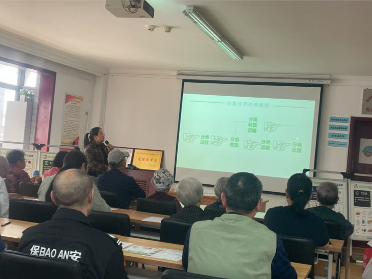 讲座中,老师从四分类垃圾分类的形式,生活垃圾分类的危害、实行垃圾分类的意义以及居民如何实践垃圾分类等四大方面做了精彩的授课。
