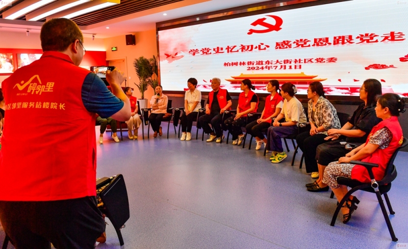 7月1日,在西安市碑林区党群服务中心,西安市碑林区柏树林街道东大街社区党委组织20名党员干部开展“学党史忆初心 感党恩跟党走”主题党日活动。