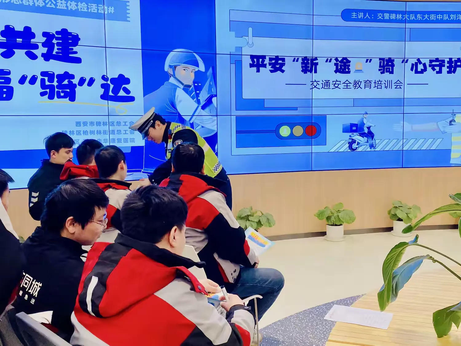在全国第62个学雷锋纪念日到来之际,为贯彻落实习近平总书记关于新就业形态群体有关工作的重要指示批示精神,有效加强对新就业形态群体的敬意与关爱。3月3日上午,在西安市碑林区总工会,碑林区柏树林街道总工会的支持和协调统筹下,和南社区党委、西安先华康复医院共同开展了以“融‘新’共建幸福‘骑’达”为主题的新就业形态群体公益体检活动,旨在进一步加强与新就业群体的联结,提前让他们感受到节日的温暖。西安市碑林区总工会副主席、柏树林街道总工会主席、柏树林街道党工委副书记、西安先华康复医院院长等领导共同出席了此次活动。