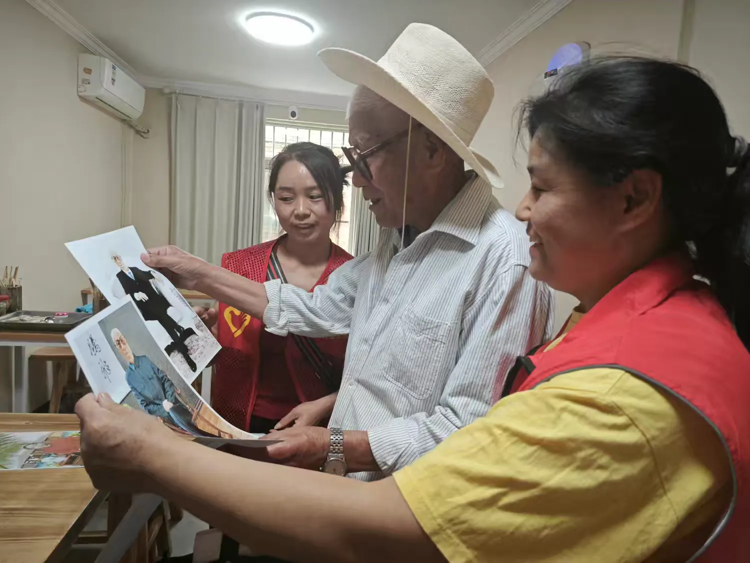 上午十点,社区养老服务站热闹非凡。志愿者们热情地迎接每一位老人的到来,耐心地引导老人们就座,为他们整理衣衫、调整发型,力求让每一位老人都能展现出最美的风采。“阿姨,放松一点,笑一笑,头稍微低一点……”在拍摄过程中,志愿者时而幽默风趣地逗老人们开心,时而细心地指导老人们摆出合适的姿势,现场欢声笑语不断。