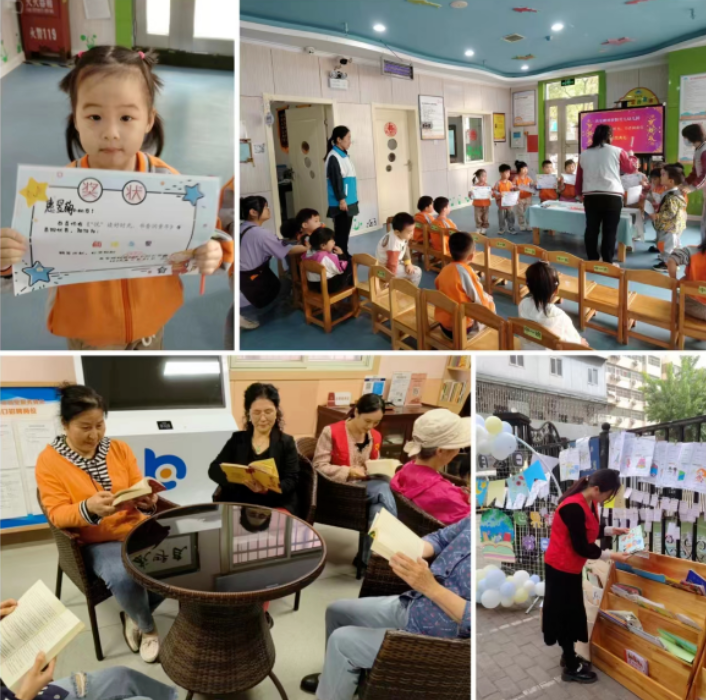 骄阳贝儿幼儿园的小朋友在老师和家长的带领下,坚持每日读书打卡,通过自主阅读让孩子们从小拥有良好的阅读习惯,爱上阅读,会读书,读好书。另外,在读书月结束之际,幼儿园的老师还举办了读书分享活动。活动现场摆放着丰富多样的书籍,包括科普、文学和历史等多个领域,旨在帮助孩子们拓宽视野并增加知识。曹家巷社区工作人员不时为孩子们解答问题,引导他们更好地理解书中的内容。此外,幼儿园老师还组织了互动颁奖环节,鼓励孩子们分享自己的读书心得,大家相互交流,现场气氛十分活跃。