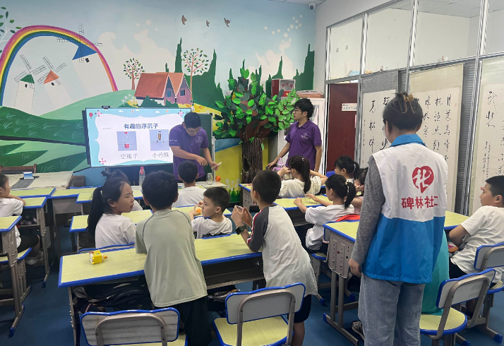 活动现场气氛热烈,志愿者们精心准备了PPT,用生动形象的语言为小朋友们讲解了压强、压力等科学知识。通过深入浅出地讲解,原本抽象的科学概念变得通俗易懂,孩子们听得津津有味,不时举手提问,与志愿者积极互动。