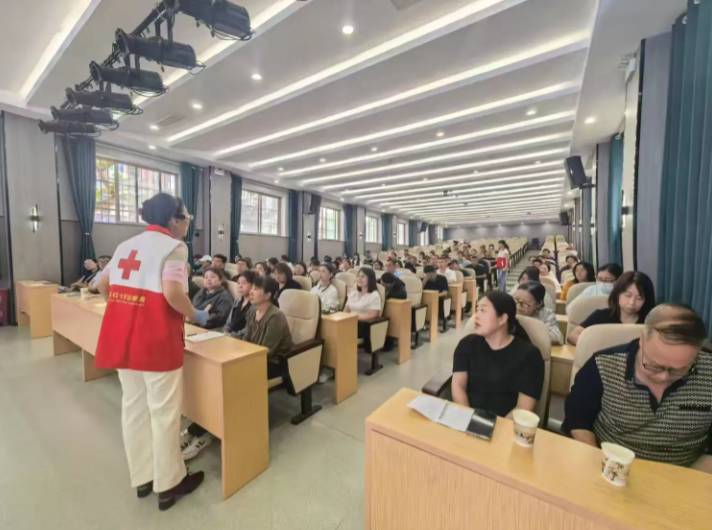 为进一步普及应急救护知识,提升群众自救互救能力,弘扬“人人学急救,急救为人人”的社会风尚,由碑林区红十字会主办,东关南街街道办事处承办的“红耀碑林救在身边”东关南街街道应急救护知识专场培训班于5月26日上午在西安综合职业中等专业学校顺利举办。本次活动吸引了社区工作者、驻地企业职工、社区群众以及高校志愿者等110余人参与,现场学习氛围热烈。