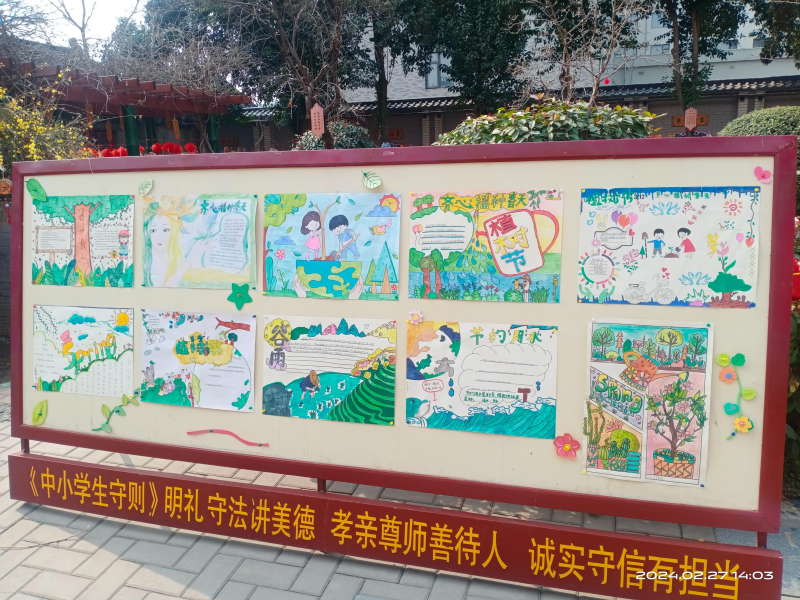 最后,工作人员邀请小朋友们在“绿叶”纸片上写下自己的名字并亲手粘贴在“大树”展板上,齐心协力植一抹绿色,溢一片春光。每一位小朋友都领取了一份迷你绿植,一起和大人们呵护种子发芽,期待绿意盎然;此外,街道综网中心又联合西师附小开展了植树节手抄报活动,孩子们大显身手,争做生态文明建设的小小宣传员和实践者,争做社区的护绿宣传使者。