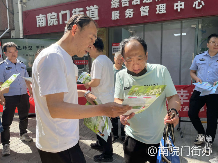 街道机关干部发挥先行示范作用,在生活和工作中践行绿色环保新风尚,走上街头做环保志愿者,通过悬挂宣传横幅、发放节能倡议书、口头宣传等方式,向过路的居民普及节能知识,分享节能减排小窍门,引导居民开展节粮、节水、节电、绿色出行等实践,形成崇尚节约节能、合理消费与低碳环保的社会风尚,推动形成绿色生产生活方式,让“绿色、低碳、环保”的理念深入人心,普及塑料污染治理各类知识,引导辖区居民自觉做好垃圾分类,杜绝使用一次性塑料制品。