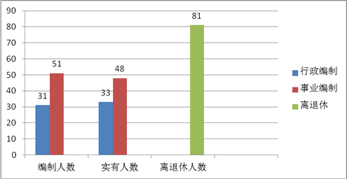 截止2019年底,本部门人员编制82人,其中行政编制31人、事业编制51人;实有人员81人,其中行政33人、事业48人。单位管理的离退休人员81人。