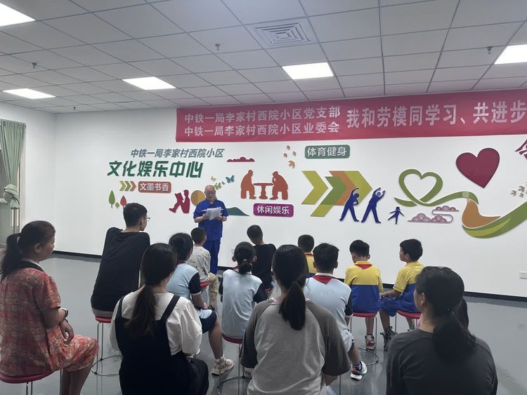 为大力弘扬劳模精神,激励和引领辖区未成年人学先锋、做先锋,8月30日下午,文艺路街道雁北社区中铁一局李家村西院小区党支部携手小区业委会在小区活动室举办了一场“我和劳模爷爷共进步”主题宣讲课。这位拥有全国优秀共产党员、全国劳动模范、全国五一劳动奖章、新中国成立六十周年“双百”人物等多项荣誉奖章的窦铁成老师现场为辖区孩子们讲述个人成长和工作经历,并与孩子们进行了亲切地交流。此次活动吸引了各小区孩子们踊跃参加,他们身着校服、佩戴红领巾,近距离感受劳模爷爷的光辉事迹,传承劳模精神。
