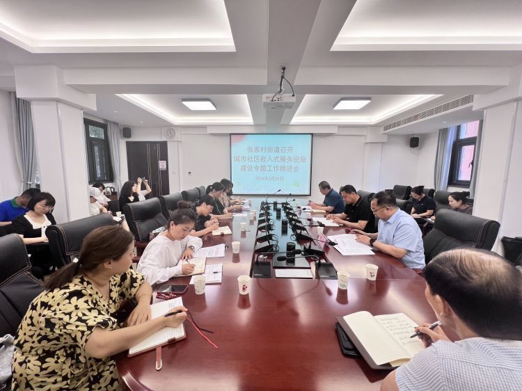 2024年5月20日下午,张家村街道办事处召开城市社区嵌入式服务设施建设推进会,会议由街道办事处四级调研员周文浩主持,街道办事处主任赵斌,街道社会事务办公室,各社区书记、主任参会。