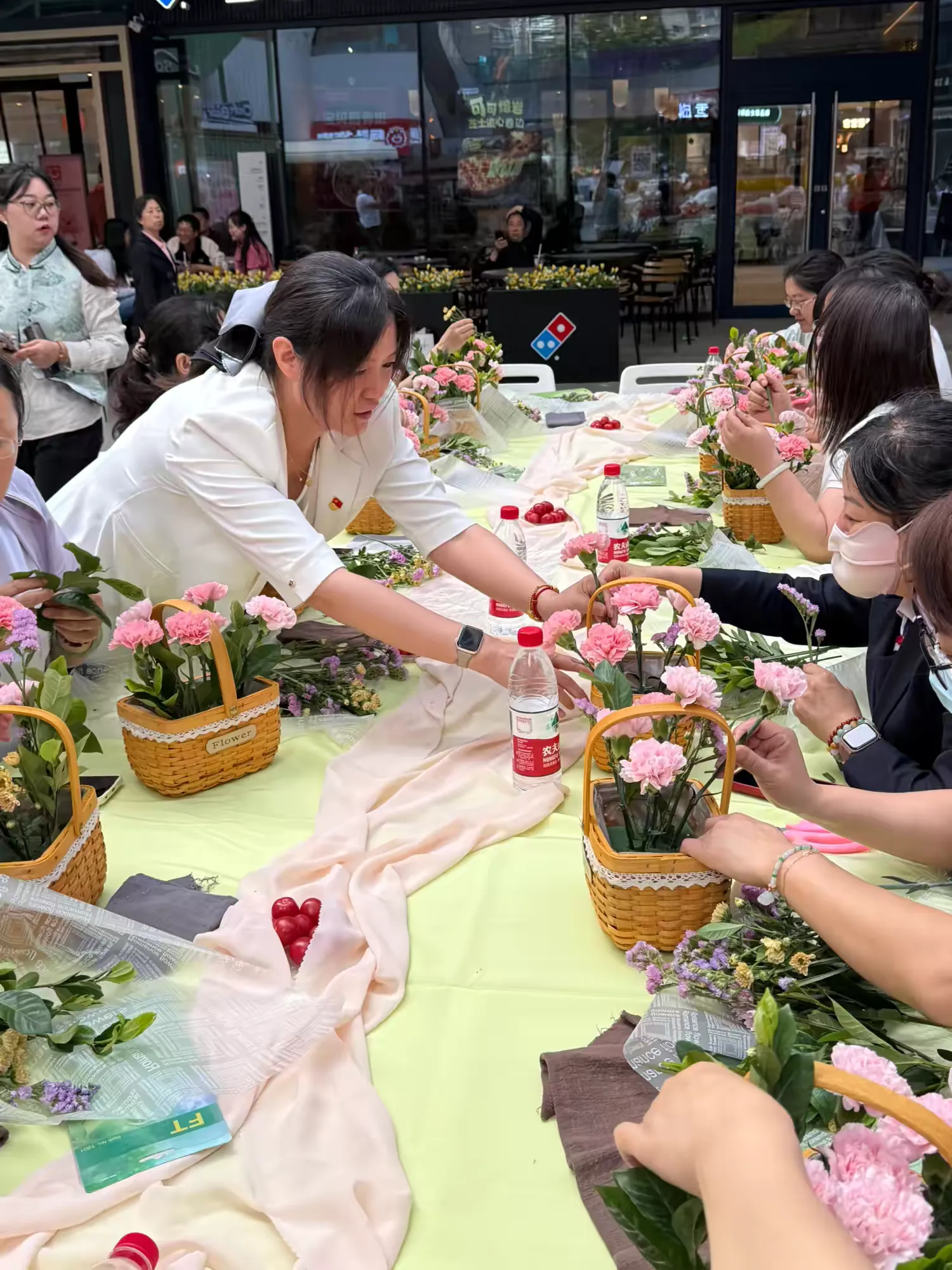 为持续深化党代表联系服务群众机制,推动“党建引领+社会参与”模式走深走实,5月9日下午,张家村街道党代表工作室联合红缨社区党委和普迈项目管理集团有限公司党支部,在盛安广场举办“爱在五月天,情暖母亲节”主题插花活动。街道分管领导、驻室党代表任莹及红缨社区各驻地单位代表、居民代表参加活动。