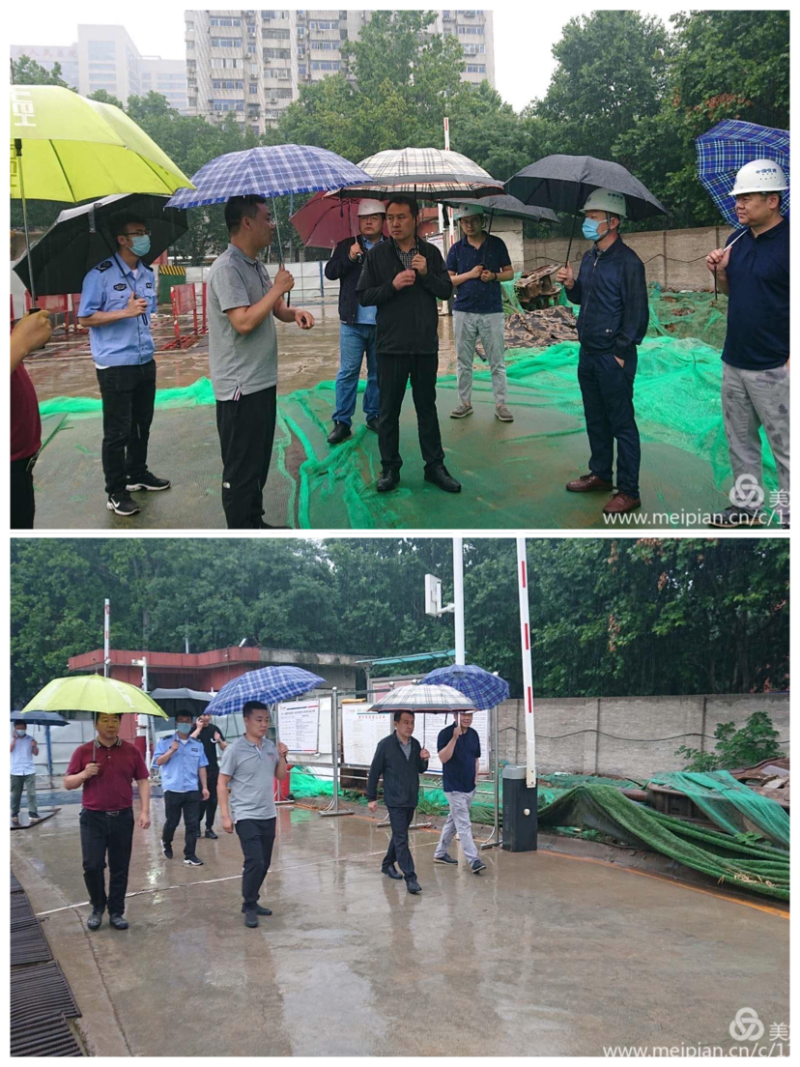 张家村街办分管领导带队检查辖区建筑工地的排水设备、沙袋等防汛物资及措施落实情况,以及辖区部分道路积水情况。
