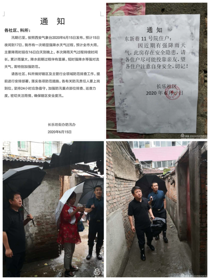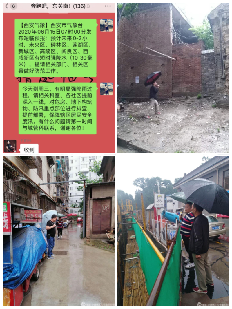 东关南街街办及时转发预警信息,并对辖区老旧房屋、建筑工地等重点部位进行检查巡查。