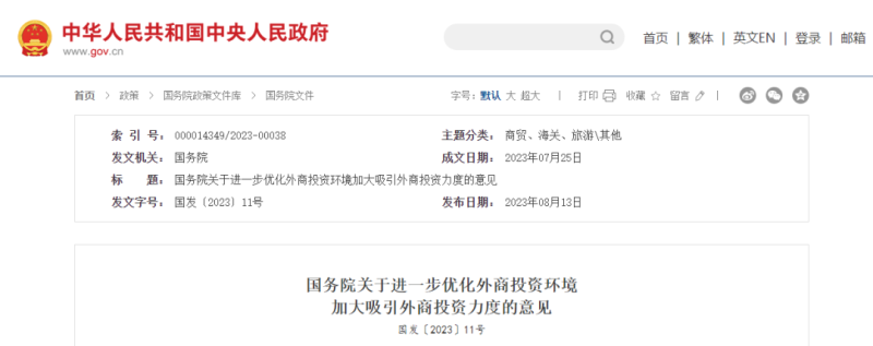 国务院日前印发《关于进一步优化外商投资环境 加大吸引外商投资力度的意见》,提出6方面24条政策措施,要求更好统筹国内国际两个大局,营造市场化、法治化、国际化一流营商环境,充分发挥我国超大规模市场优势,更大力度、更加有效吸引和利用外商投资。