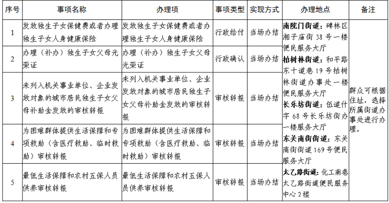碑林区街道办事处群众和企业到政府办事“最多跑一次”事项清单(42项)