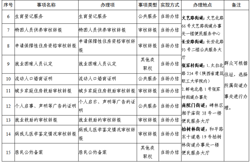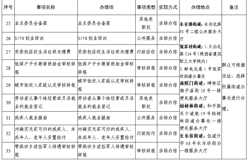 附件:西安市碑林区街道办事处群众和企业到政府办事“最多跑一次”事项清单