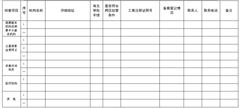 碑林区殡葬服务机构和公墓销售网点排查情况汇总表