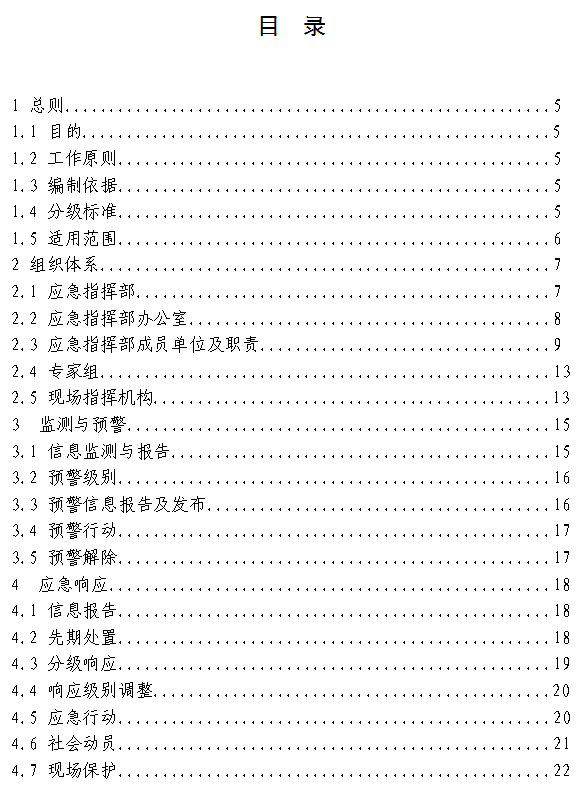 4.4响应级别调整一旦生产安全事故扩展,且有蔓延扩大的趋势、情况复杂难以控制时,应逐级上报,及时提升预警和响应级别。生产安全事故危害已经减缓和消除,不会进一步扩散,应逐级报告上级政府,相应降低或解除预警和响应级别。
