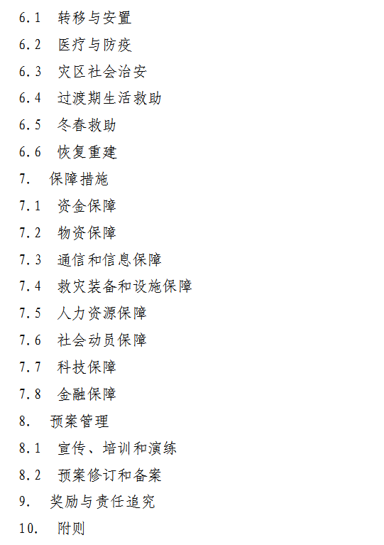 7.4.2 区政府要为自然灾害救助工作提供必需的交通、通信等设备和装备。