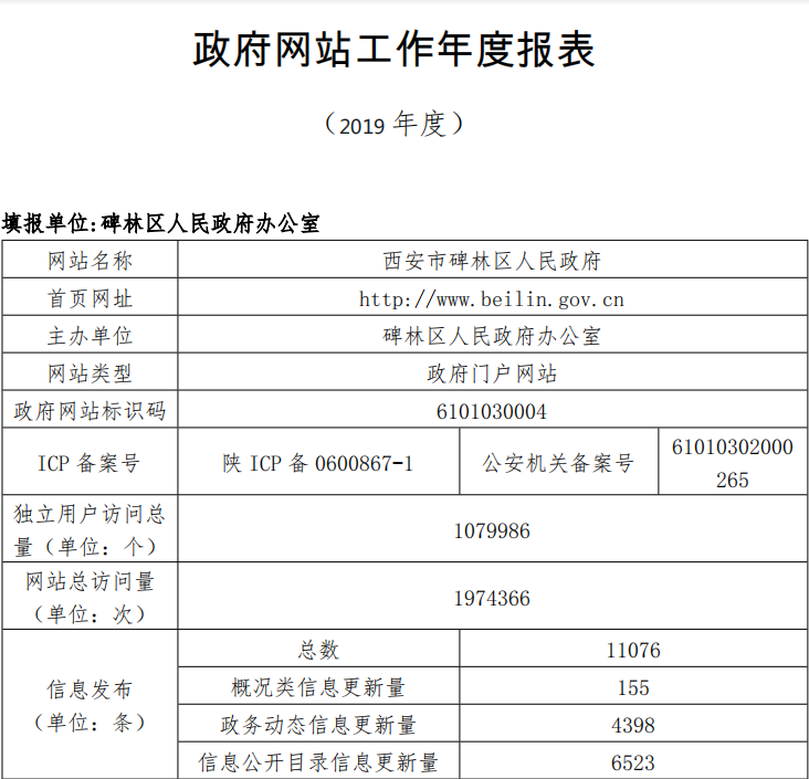 2019年碑林区人民政府网站年度工作报表