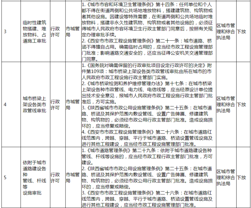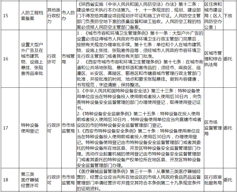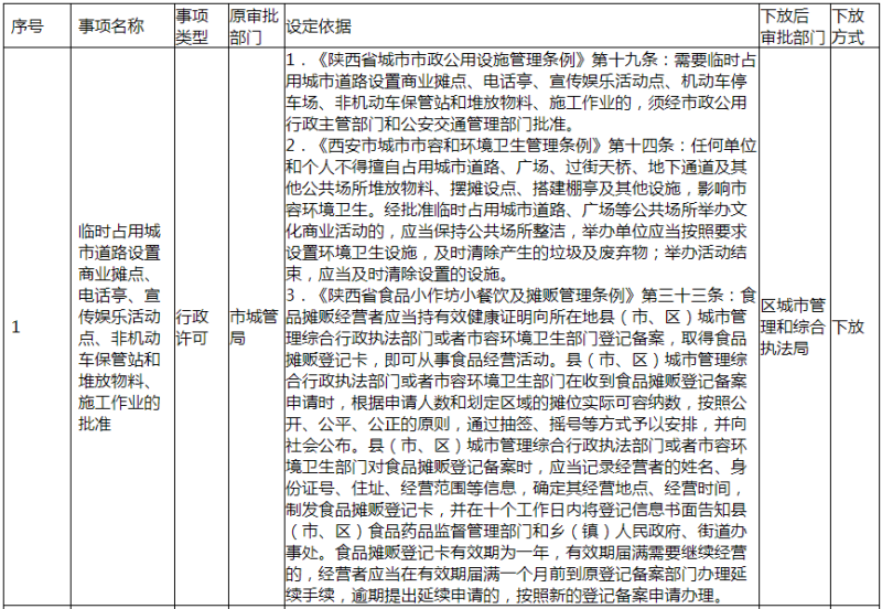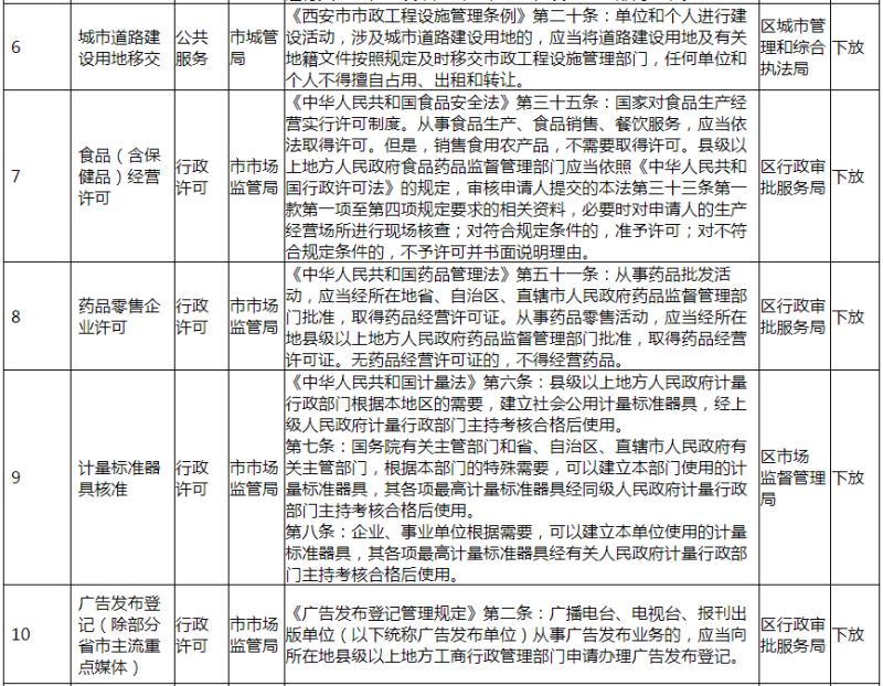 根据《西安市人民政府关于下放一批行政事权的通知》(市政发〔2020〕11 号)文件精神,市政府决定下放一批行政事权(共计 36 项)。我区负责落实承接 19 项下放行政事权,其中我局承接下放行政事权7项,分别为目录第1、2、3、4、5、6、16 项,全局各相关业务科室已做好下放行政事权的落实承接工作,确保各项行政事权“放得下、接得住、管得好”。