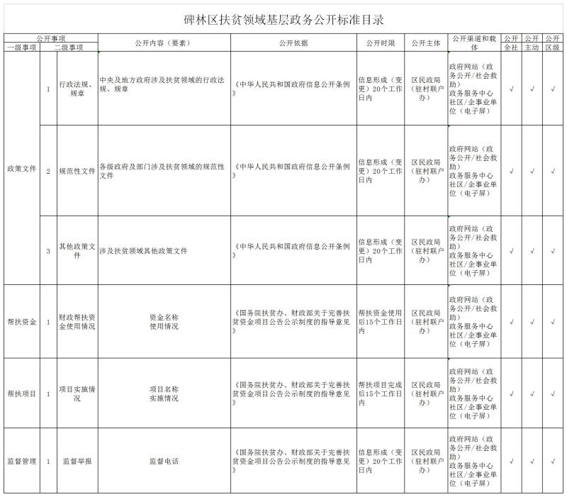 碑林区扶贫领域基层政务公开标准目录